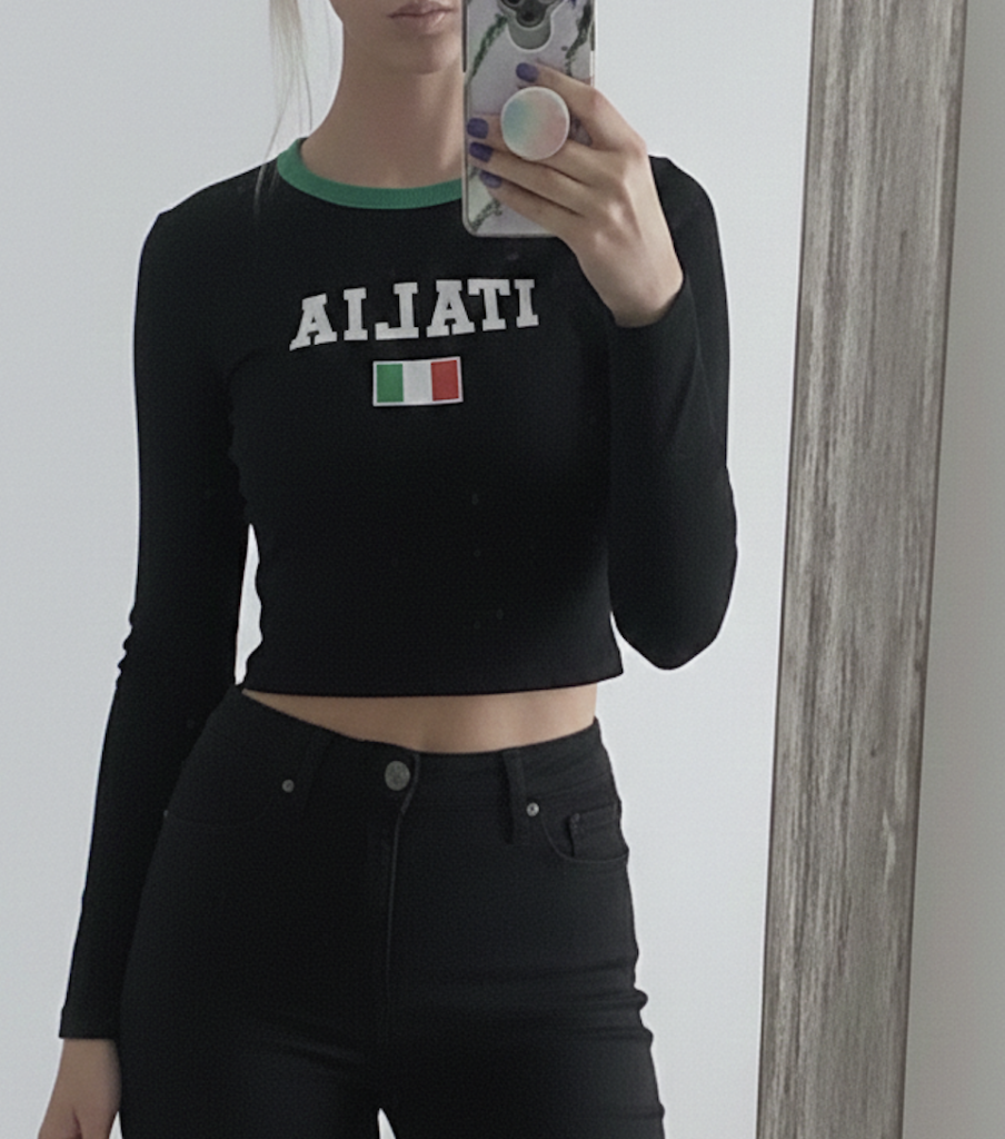 3. The Graphic The “ITALIA” graphic with the little flag detail is exactly what I wanted. It doesn’t feel like a cheap iron-on that’s going to crack after one wash (we’ve all been there). It gives that “I found this in a vintage shop in Milan” look without the $2,000 plane ticket.