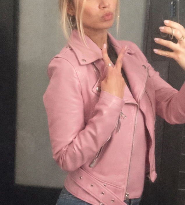Our Style Tip: If you’re wearing the pink jacket, keep your accessories minimal to avoid looking cluttered. If you’re wearing the black jacket, don’t be afraid to add some silver hardware or a chunky ring to lean into that edgy aesthetic.