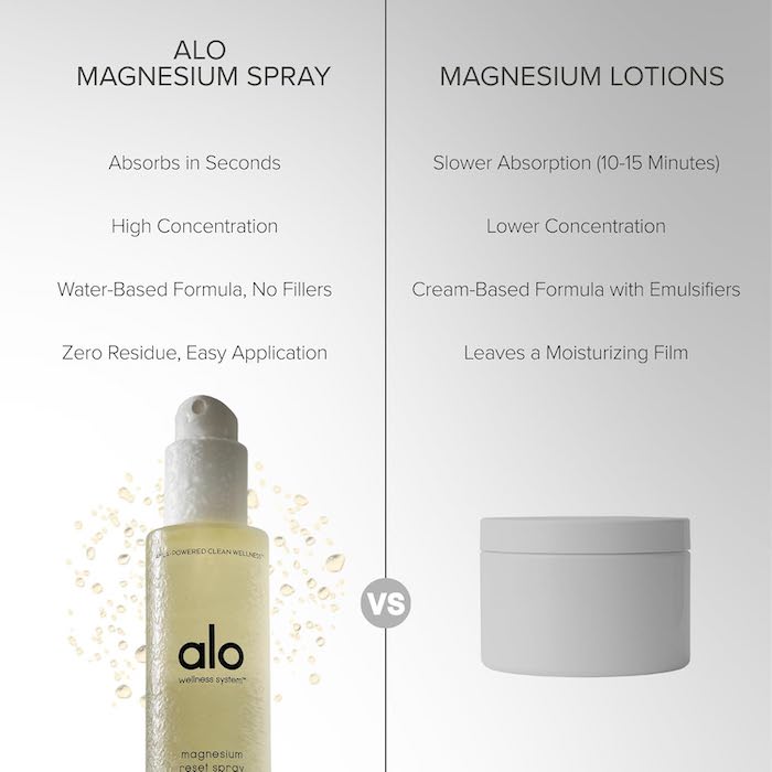 Magnesium is essential for muscle function. When you work out, your body depletes its magnesium levels, which can lead to cramping and soreness. The Alo Magnesium Reset Spray allows for targeted, topical application. Spraying it directly onto fatigued muscles post-workout can help relax them much faster than oral supplements, reducing downtime between training sessions.
