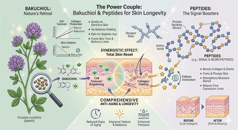 As we move through 2026, the beauty world has shifted its focus. We are no longer interested in “burning” our skin into submission. Instead, we are embracing Skin Longevity, and the undisputed stars of this movement are Bakuchiol and Peptides.